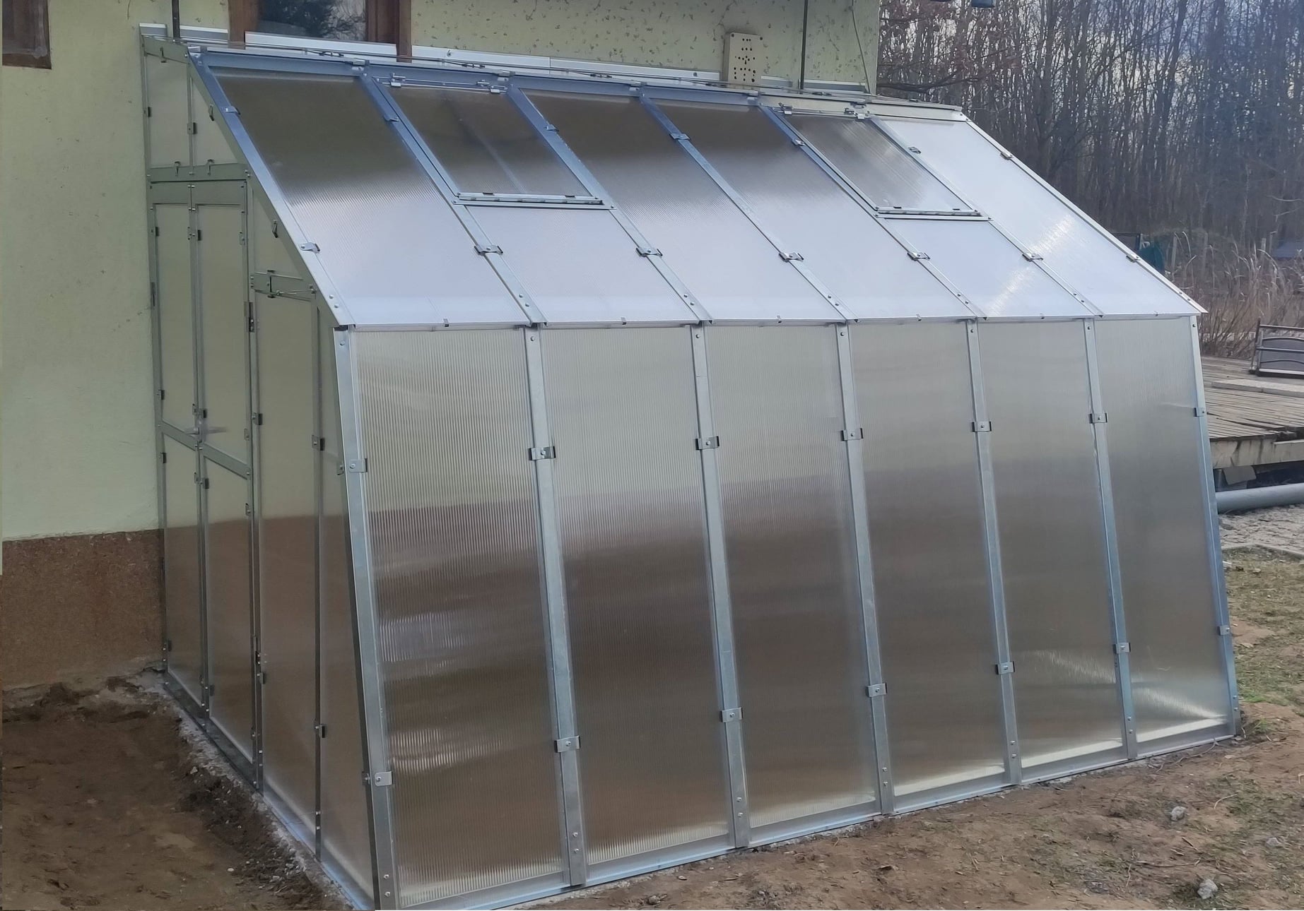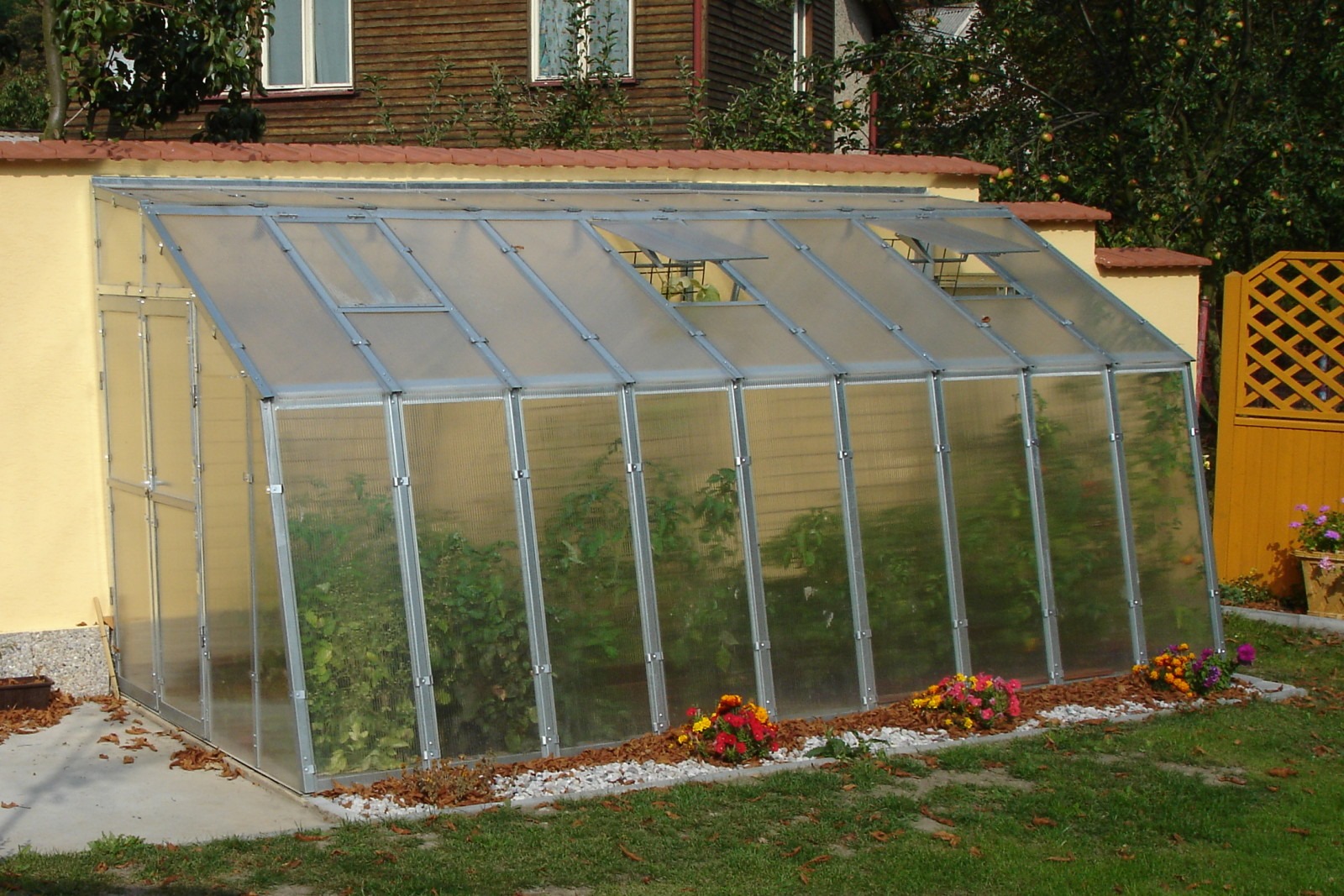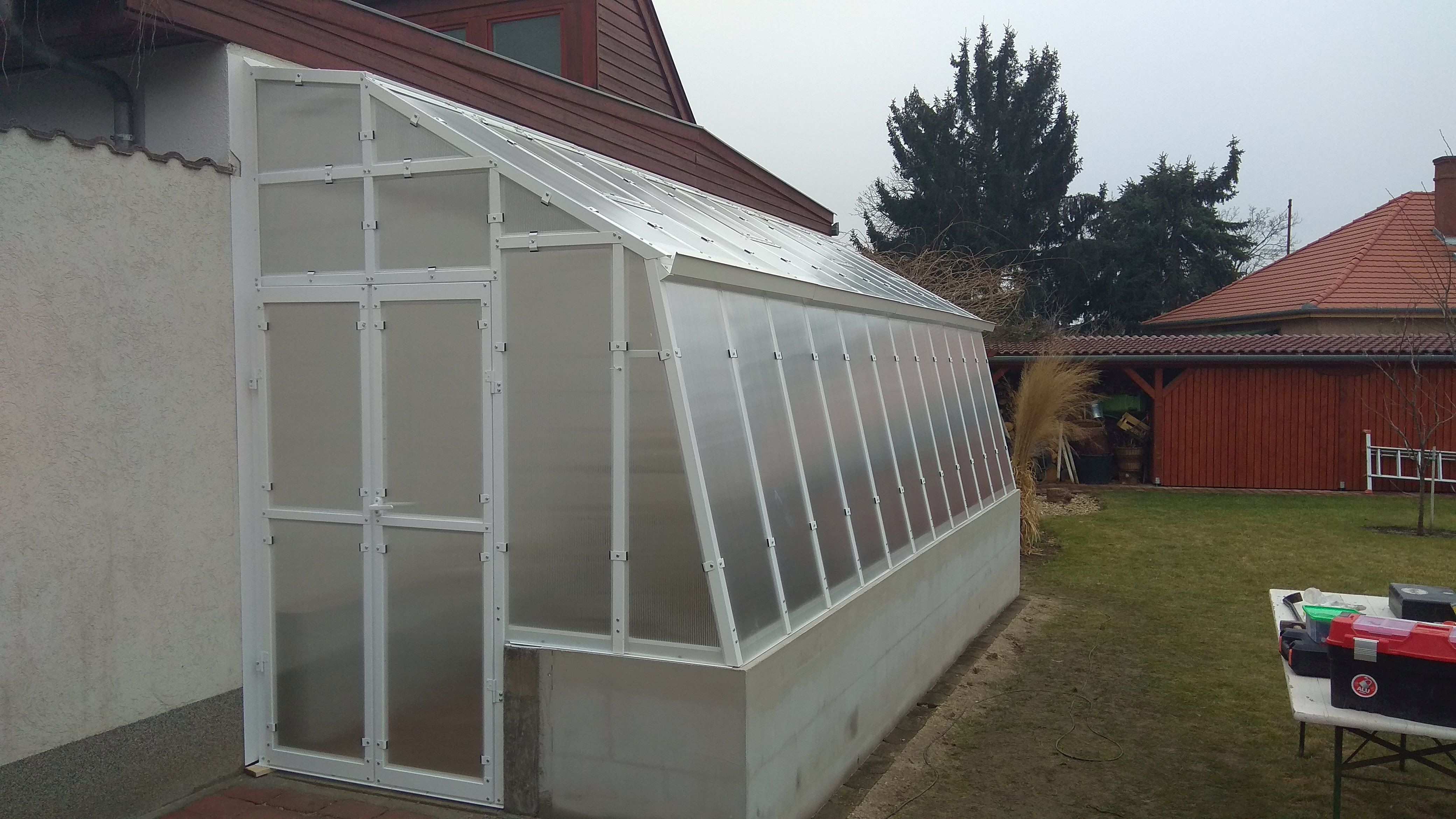 C típusú üvegháznál: egyszárnyú 52cm, D típusúnál: kétszárnyú 105cm bejárati ajtó. Tető ablak: lehet több is, és kézi illetve automata nyitású. Külön felárral kérhető: - az üvegház mind két végén lehetnek ajtók, - süllyesztett ajtóval (ha az alapot emelni akarjuk a belmagasság növelése érdekében) - a vázszerkezet horganyzott + festett kivitelben - üveg helyett 8mm-es zárt cellás polikarbonát borítással - tetőablakokhoz automatikus ablaknyitó (gázos, nem elektromos! ) - ereszcsatorna - oldalablak - plusz tetőablak - hosszirányú bővítés Árak: C3 típusú 278. 660. -Ft+ÁFA Méretek (szél. /hossz. /mag. ): 152 x 303 x 215 cm C4, 5 típusú 368. 520. -Ft+ÁFA Méretek (szél. /hossz. /mag. ): 152 x 452 x 215 cm C6 típusú 458. 340. -Ft+ÁFA Méretek (szél. /hossz. /mag. ): 152 x 601 x 215 cm D3 típusú 400. 500. -Ft+ÁFA Méretek (szél. /hossz. /mag. ): 212 x 303 x 222 cm D4, 5 típusú 524. 750. -Ft+ÁFA Méretek (szél. /hossz. /mag. ): 212 x 452 x 222 cm D6 típusú 648. 990. -Ft+ÁFA Méretek (szél. /hossz. /mag. ): 212 x 601 x 222 cm